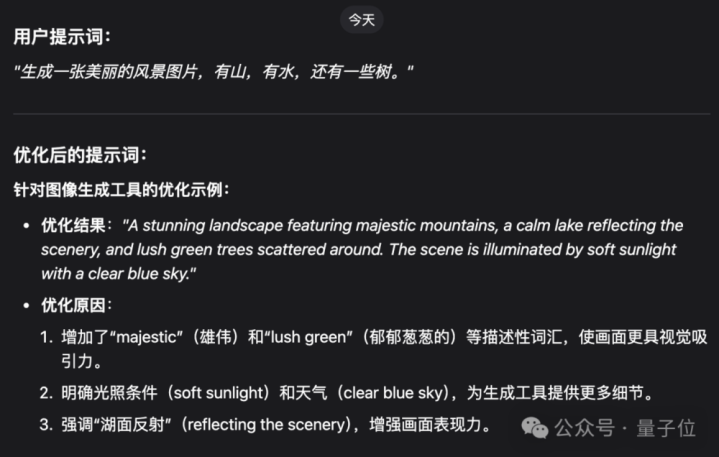 又或者,它会自动对用户的问题进行提示词优化。比如结合上下文、增加细节等。